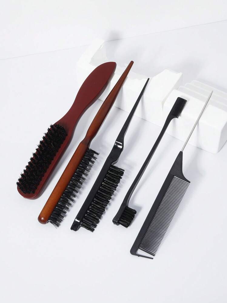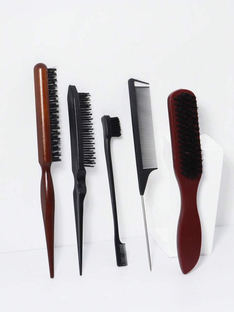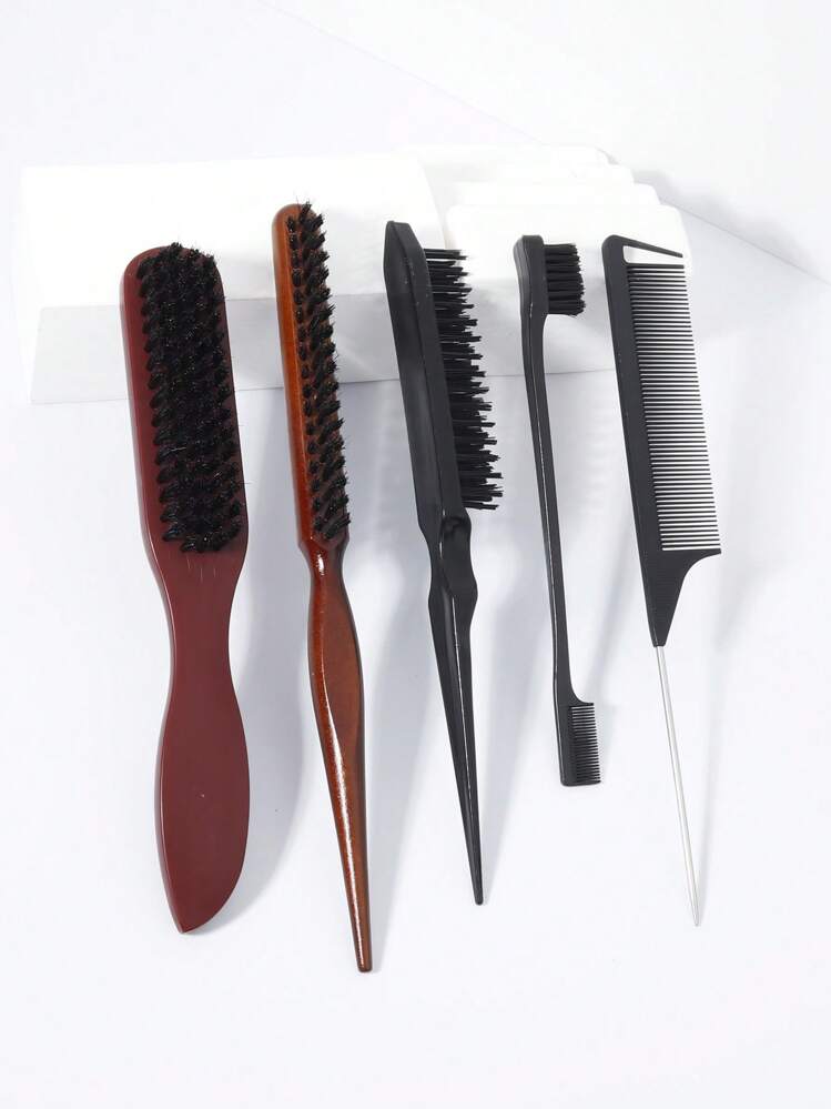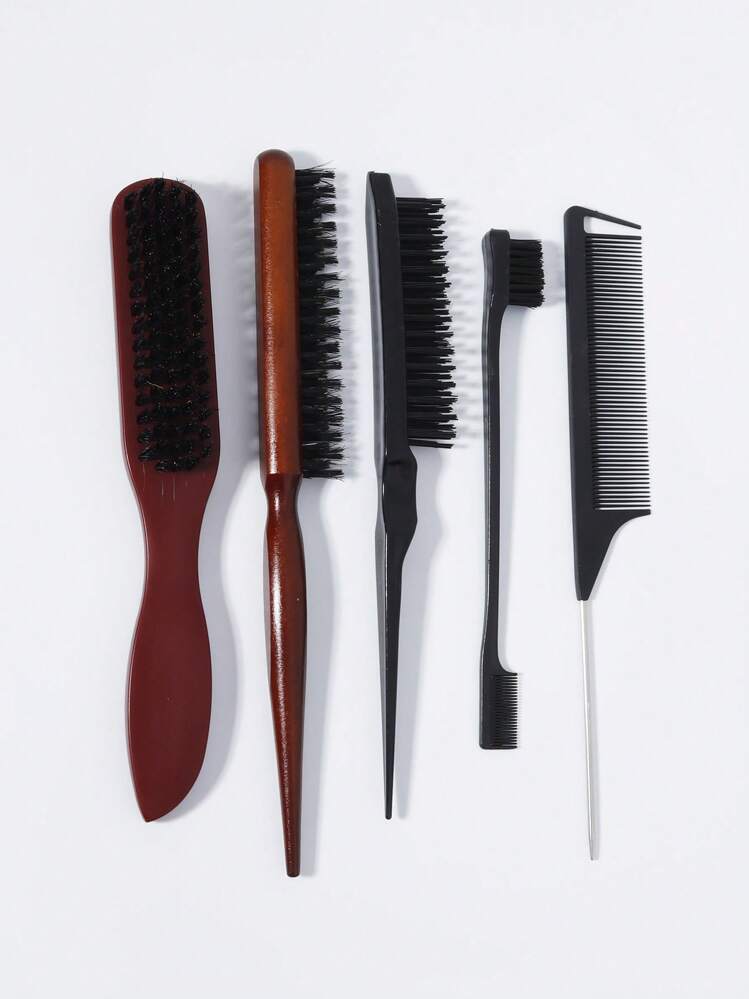 مجموعة 5قطع من أمشاط تصفيف الشعر مع فرشاة اللحية، مجموعة فرشاة شعر للتسريح للخلف، فرشاة تحكم الحافة، أمشاط شك للنساء والرجال لتصفيف الشعر واللحية